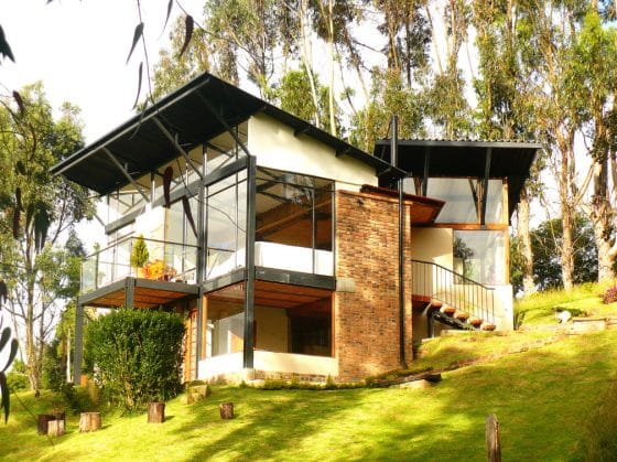 Hacia el interior se se ha combinado las estructuras de acero, con coberturas y columnas de madera, este conjunto otorga una sensación de calidez necesarios en el diseño de casas de campo.