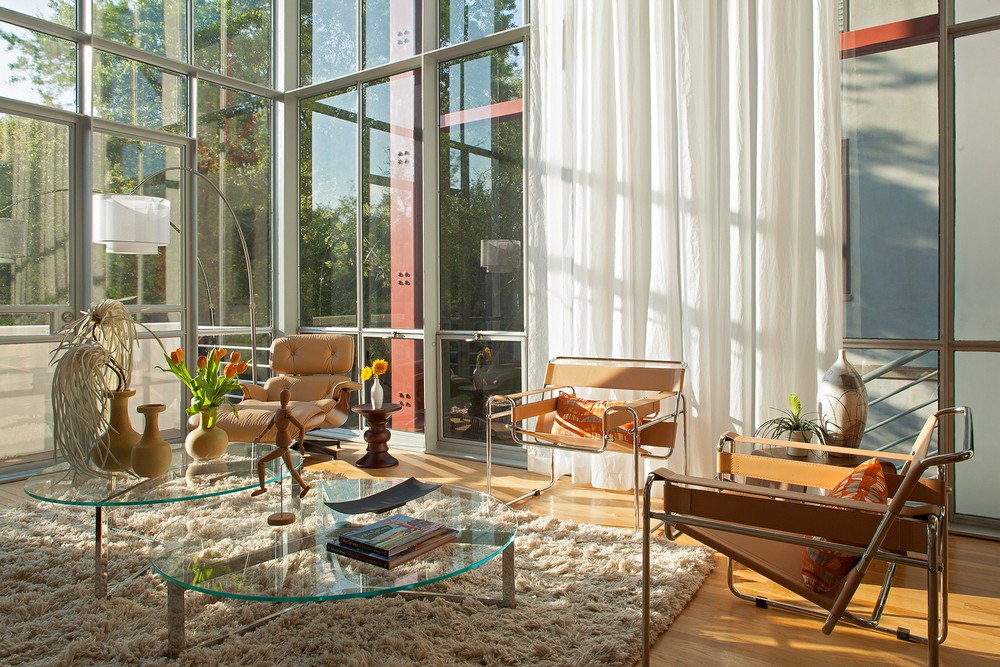 Los pisos de madera de roble rojo destacan sobre las paredes y techos pintados de color blanco, puedes usar este recurso de diseño que como hemos visto en Construye Hogar es muy utilizado por los diseñadores de interiores