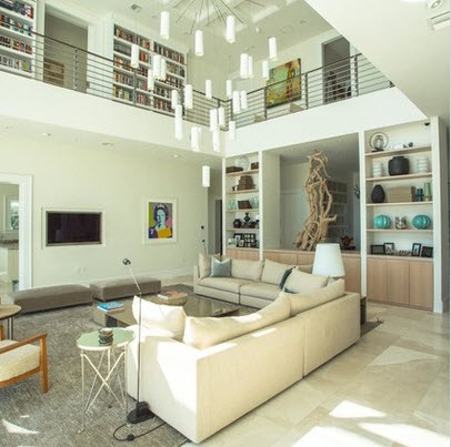 Salas a doble altura, usualmente se suelen diseñar salas a doble altura en zonas cálidas, como por ejemplo frente al mar, visualmente aparenta ser mas grande y se consigue un ambiente fresco y agradable.