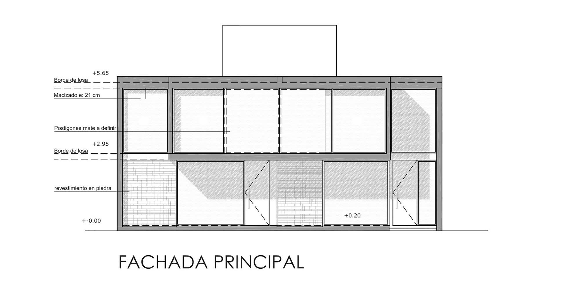 Diseño de fachada moderna de casa dos pisos (cubiertas las ventanas)